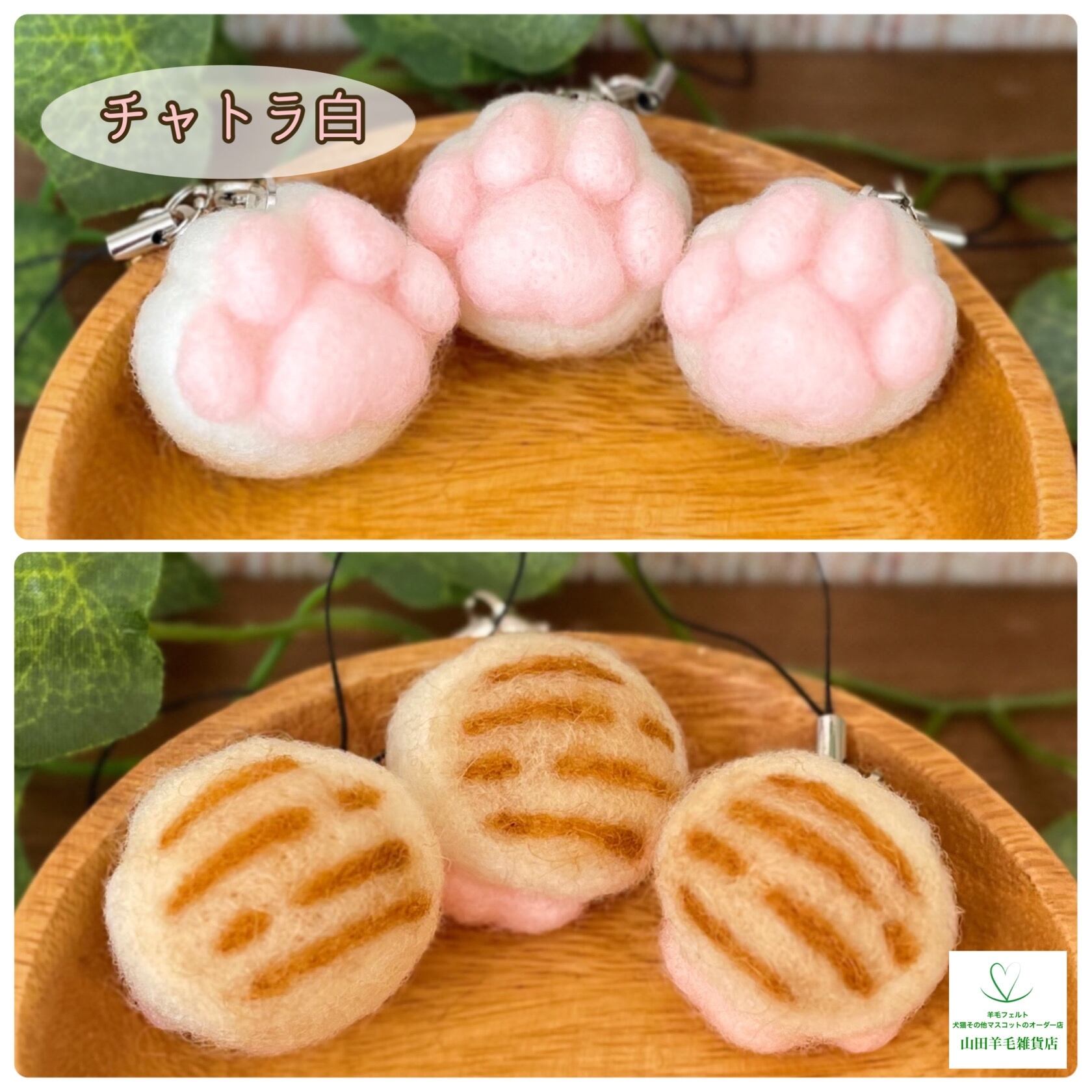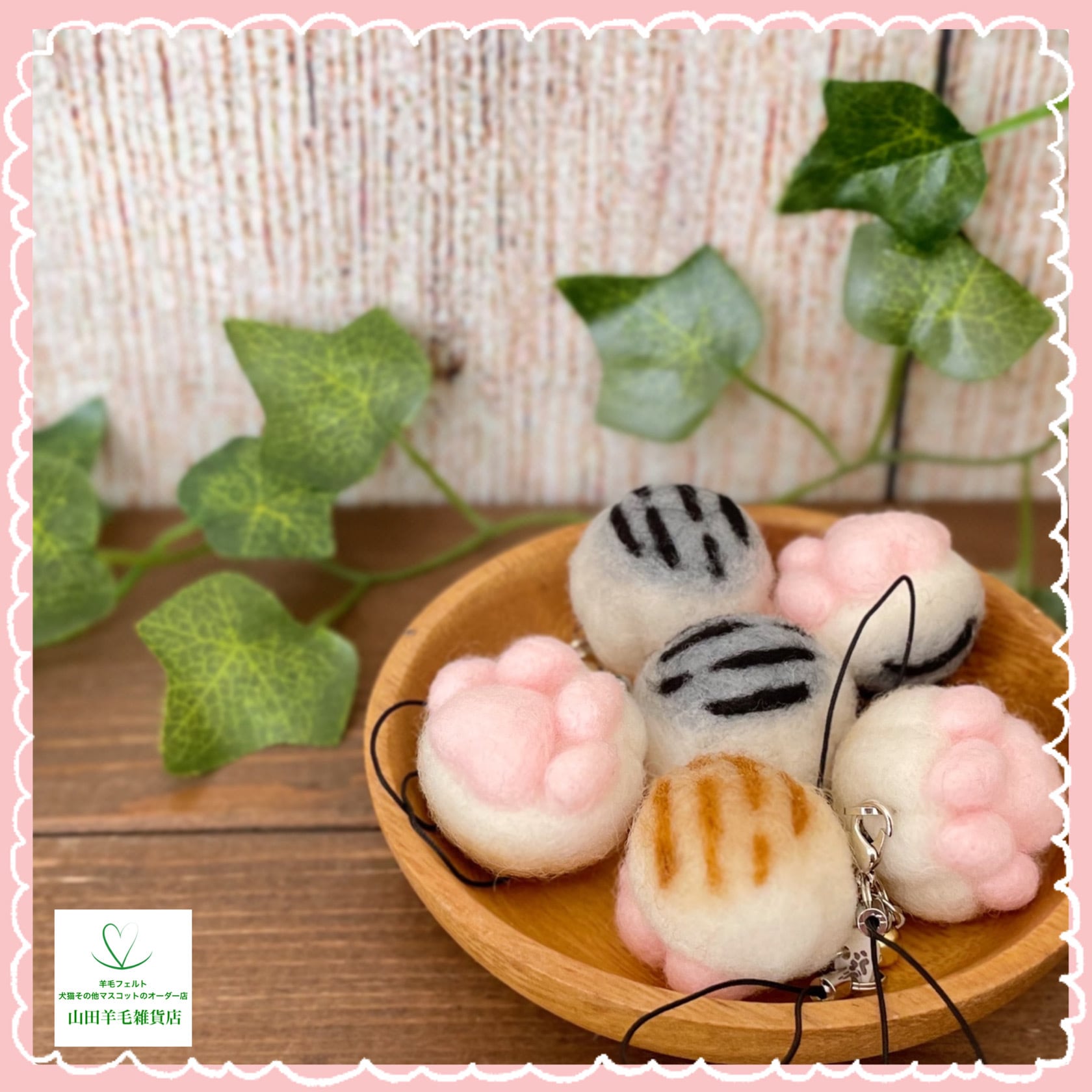 ころんとした可愛いにゃんこの肉球ストラップです。